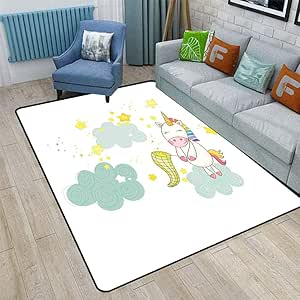 Amazon.com: Unicorn Modern Rugs for Floor, Baby Mystic Unicorn Girl Sitting on Fluffy Clouds and ...